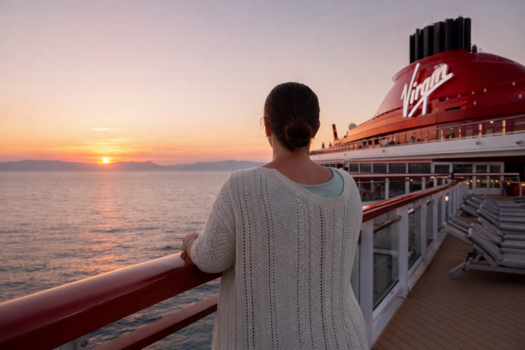 Porque verlo desde la cama está bien, pero subir a cubierta y sentir el aire en la cara ya es otro nivel. Silencio, cielo cambiando de color y cero notificaciones. Maravilloso.